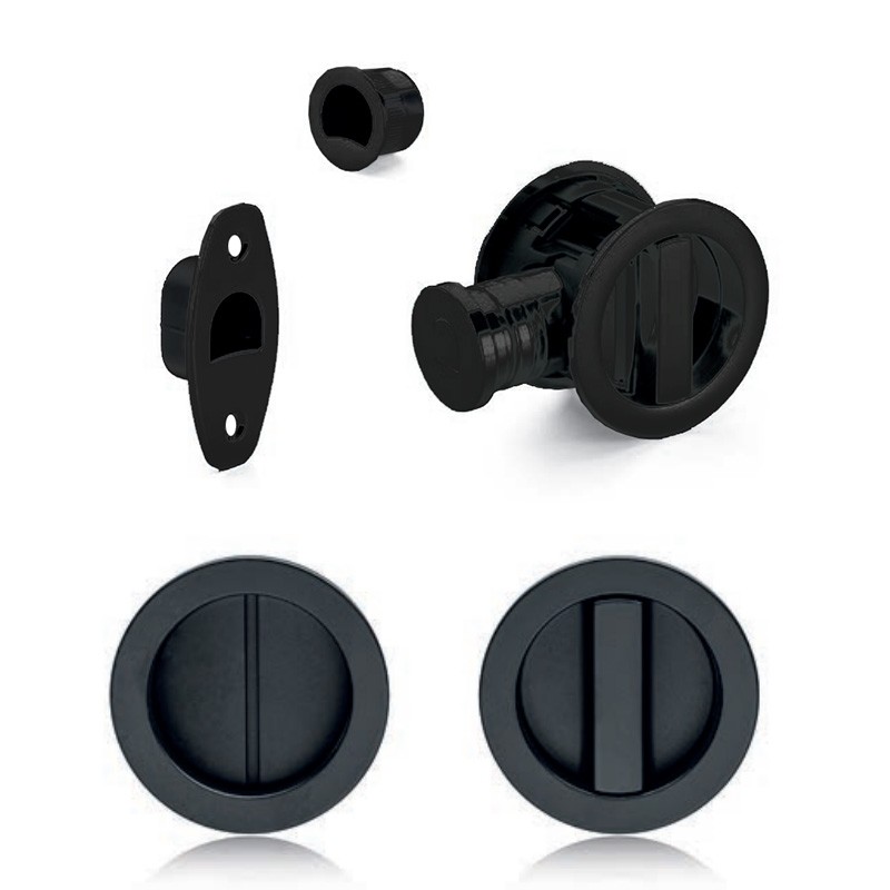 Dit afsluitbaar schuifdeurslot rond zwart is dé oplossing voor schuifdeuren die tegen een wand aankomen. Met dit schuifdeurslot kun je door middel van de uitschuivende haak deuren afsluiten en bijvoorbeeld als wc-deur gebruiken.
