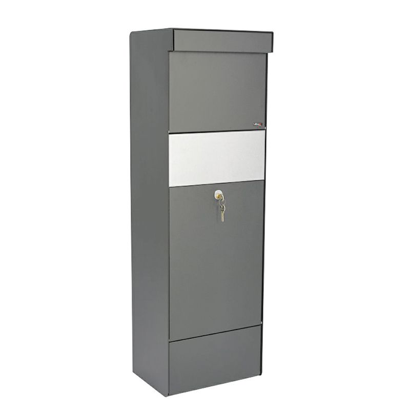 De pakketzuil Allux Grundform antraciet/kleuren heeft een strakke vormgeving met een kenmerkende uitstekende briefklep.