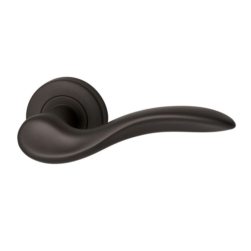 Een paar deurkrukken, 2 gatdelen op rozet + losse stift & bevestigingsmateriaal
