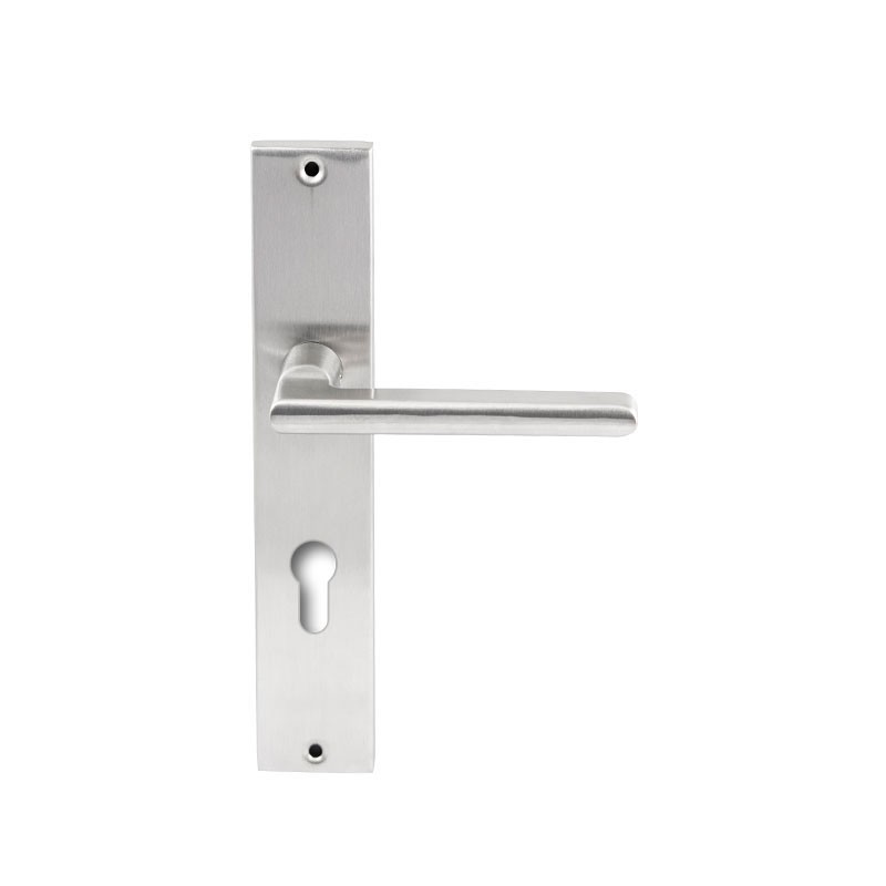Een twintigtal moderne deurkrukken in RVS die vastgeveerd op een schild geleverd worden met een prettige prijs en hoogwaardige kwaliteit. Voorzien van een europrofiel uitsparing op 72mm van het krukgat.
