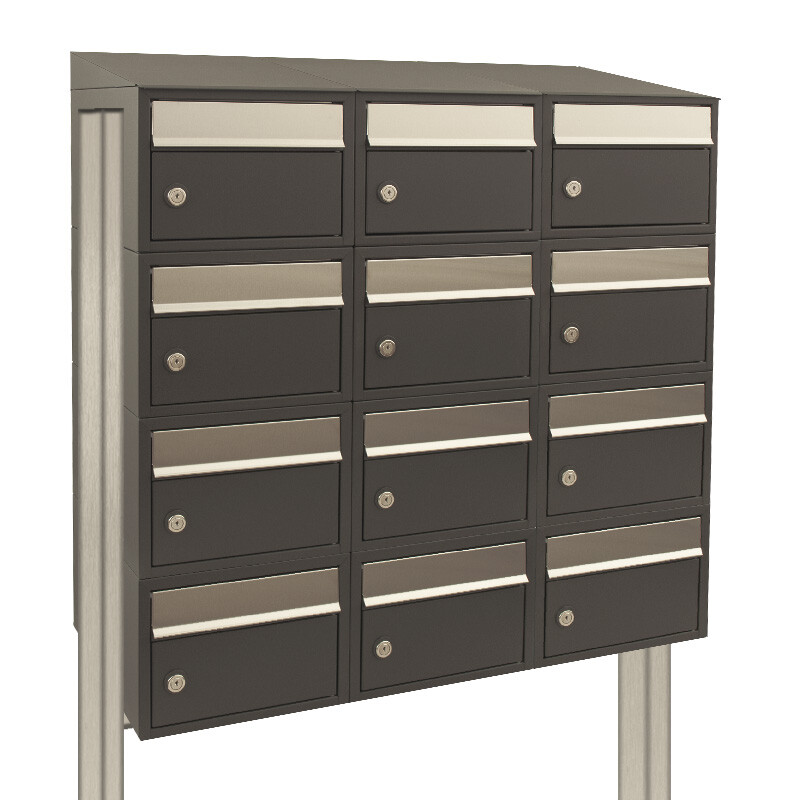 Brievenbus Brick 3-breed, 4-hoog met dak op statief antraciet