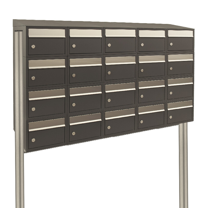 Brievenbus Brick 5-breed, 4-hoog met dak op statief antraciet