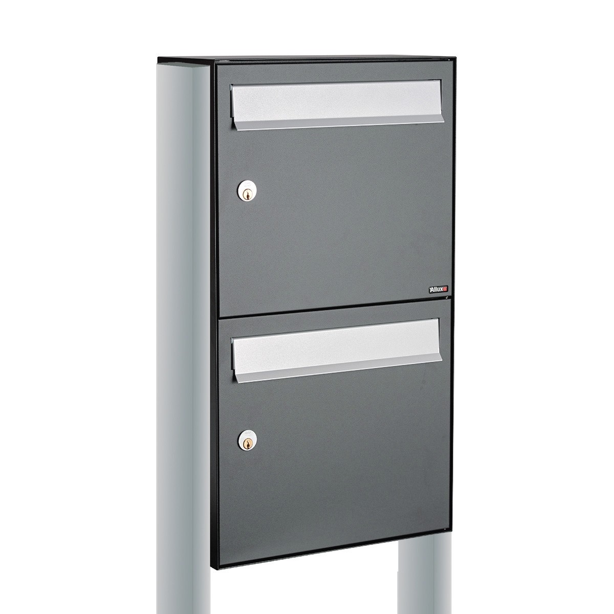 De Allux brievenbus Flow 2-hoog antraciet op statief is een modulair brievenbussysteem met een korte levertijd. Deze set bestaat uit 2 brievenbussen dat als compleet blok geleverd wordt.