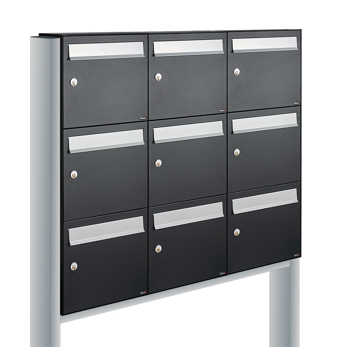 Brievenbus Flow 3-breed, 3-hoog op statief zwart