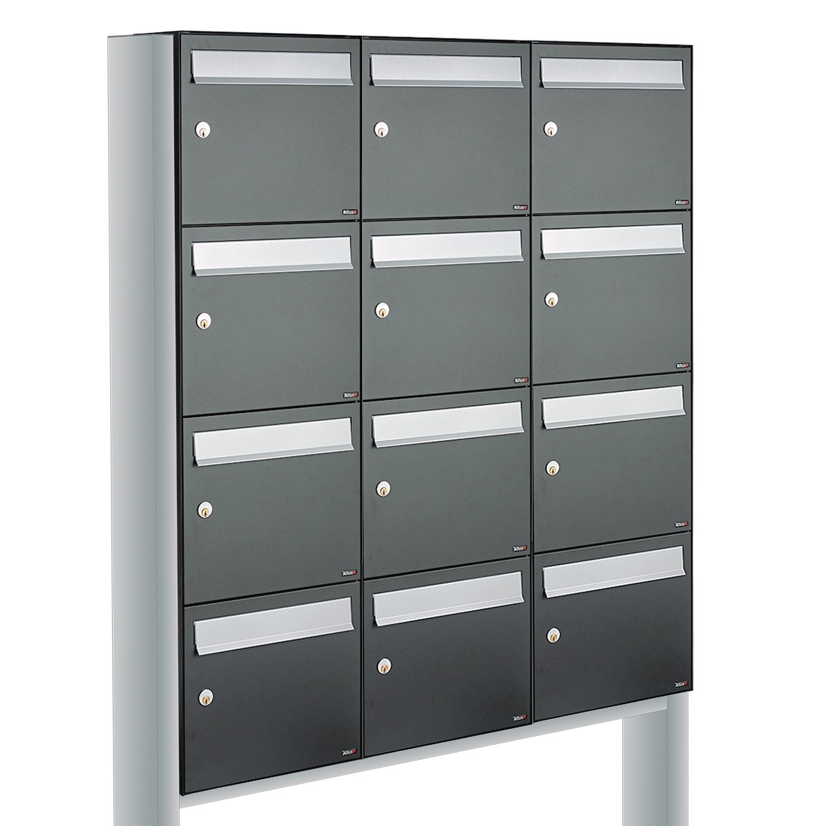 Brievenbus Flow 3-breed, 4-hoog op statief antraciet