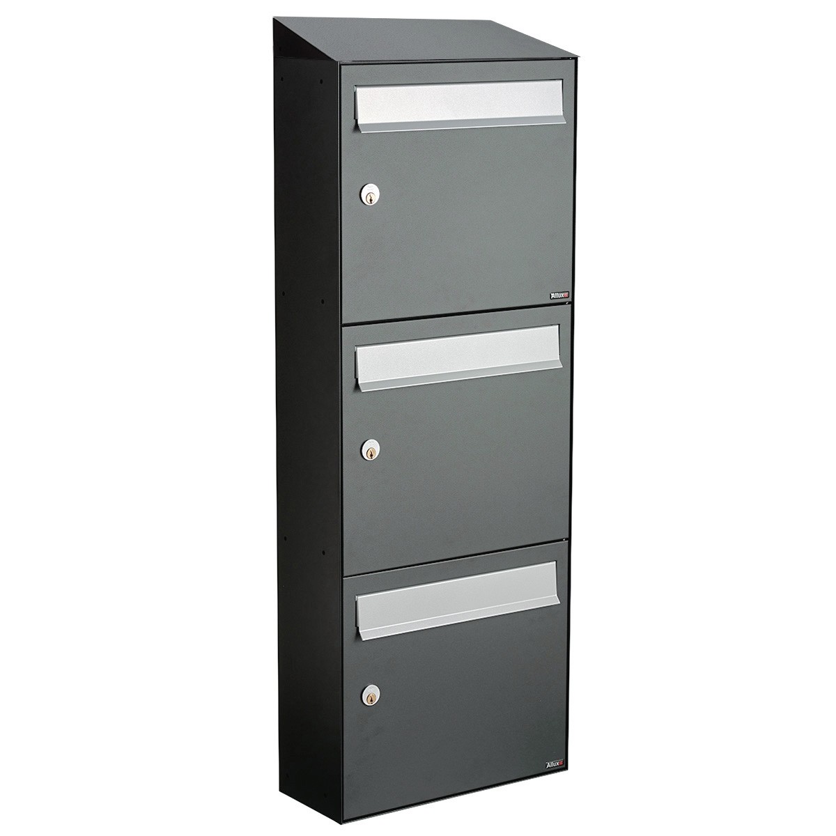 De Allux brievenbus Flow 3-hoog met dak antraciet is een modulair brievenbussysteem met afmeting 400x350x170mm (bxhxd) per brievenbus, met een korte levertijd.