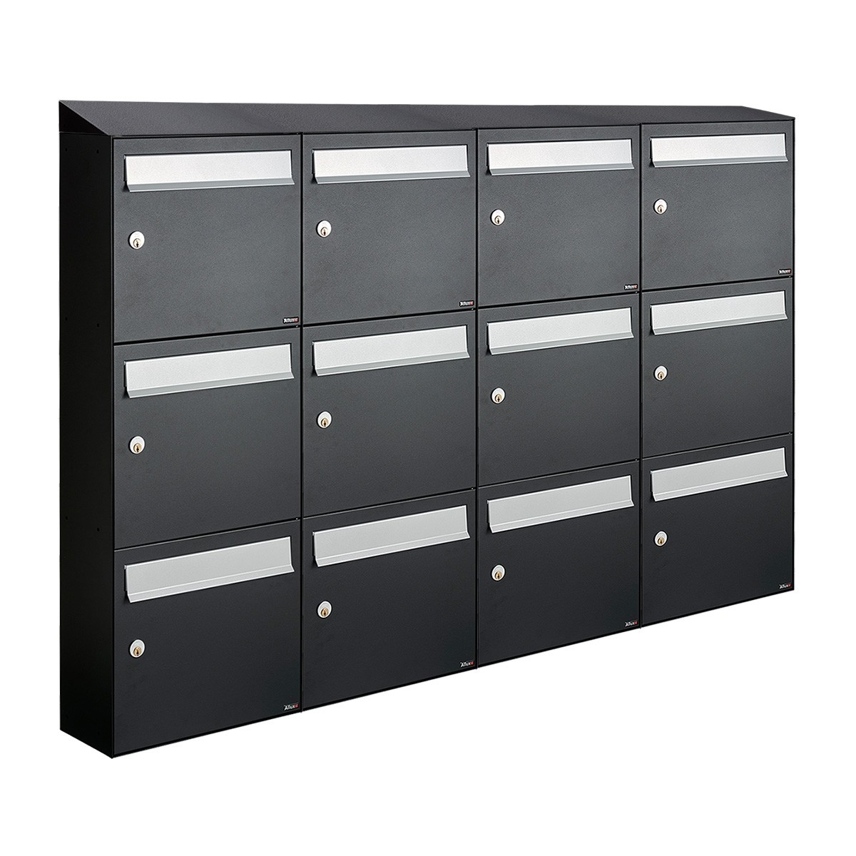 Brievenbus Flow 4-breed, 3-hoog met dak zwart