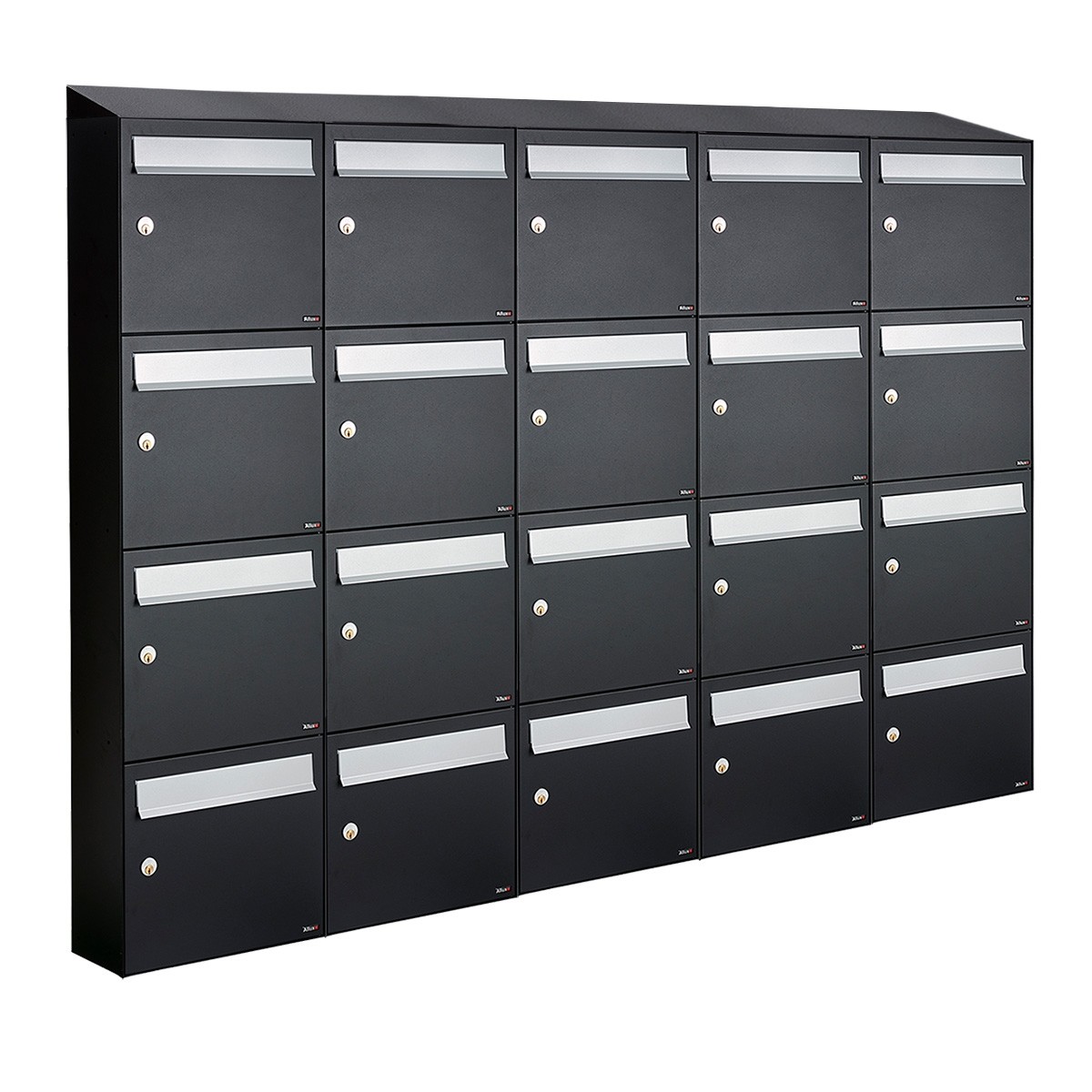 Brievenbus Flow 5-breed, 4-hoog met dak zwart
