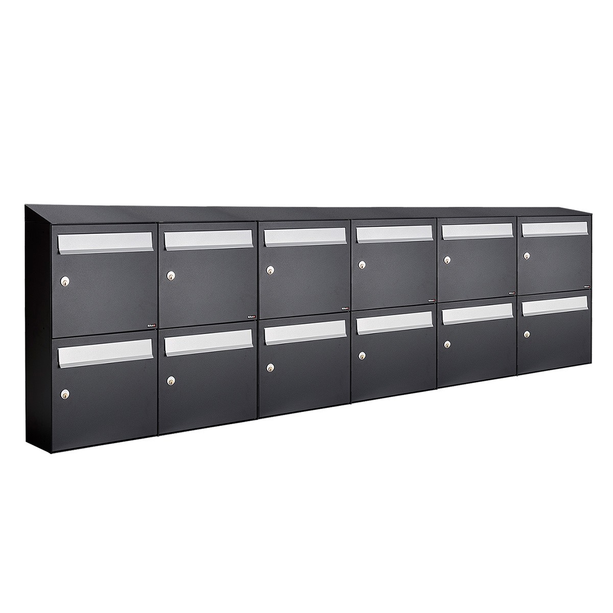 Brievenbus Flow 6-breed, 2-hoog met dak zwart
