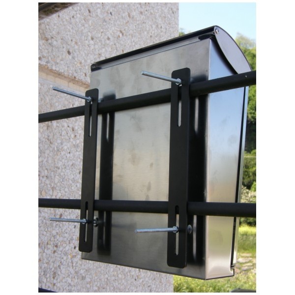 Een universele hekmontage voor brievenbussen, als complete set geleverd voor één brievenbus.