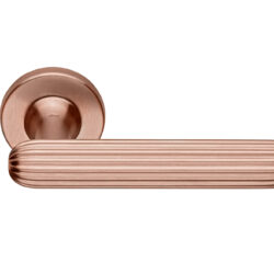 Het massieve rozet is uitgevoerd in PVD copper; een messing rozet met een satijn koperen afwerking. Een charmant beeld waarbij de kleur van koper de handgrepen op rozet verrast en versterkt in huiselijke interieurs met een elegant karakter en krachtige identiteit. Afwerking gegarandeerd voor 10 jaar.