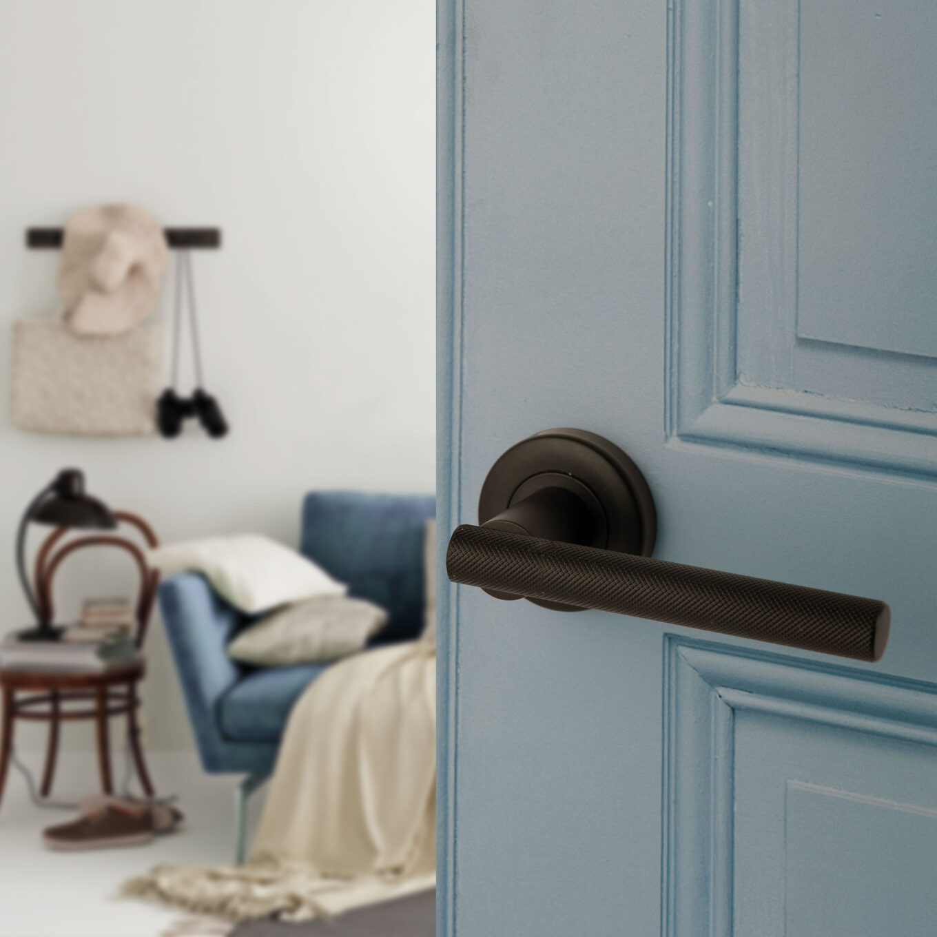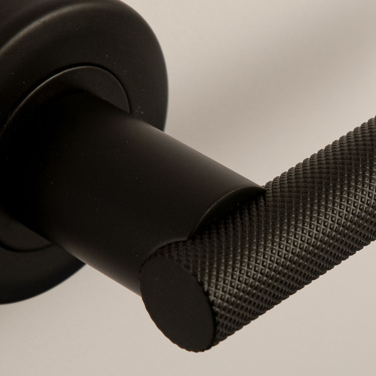 Het gekartelde handvat geeft een industriële look & feel aan deze deurkruk, waar de aansluiting voor een prachtige overgang zorgt bij dit tijdloze model.