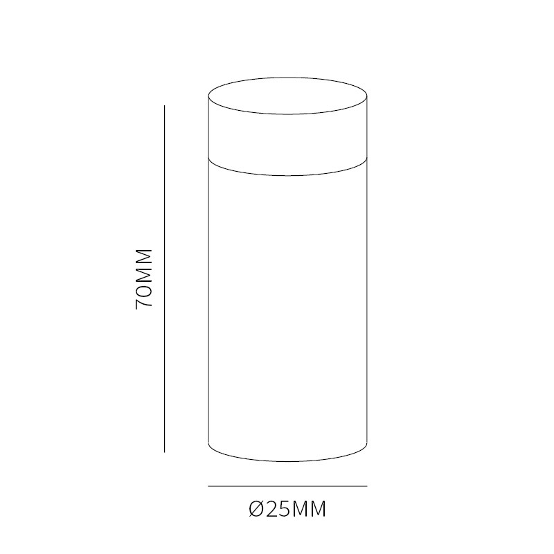 De cilinder heeft een doorsnede van 25mm en is 70mm lang.