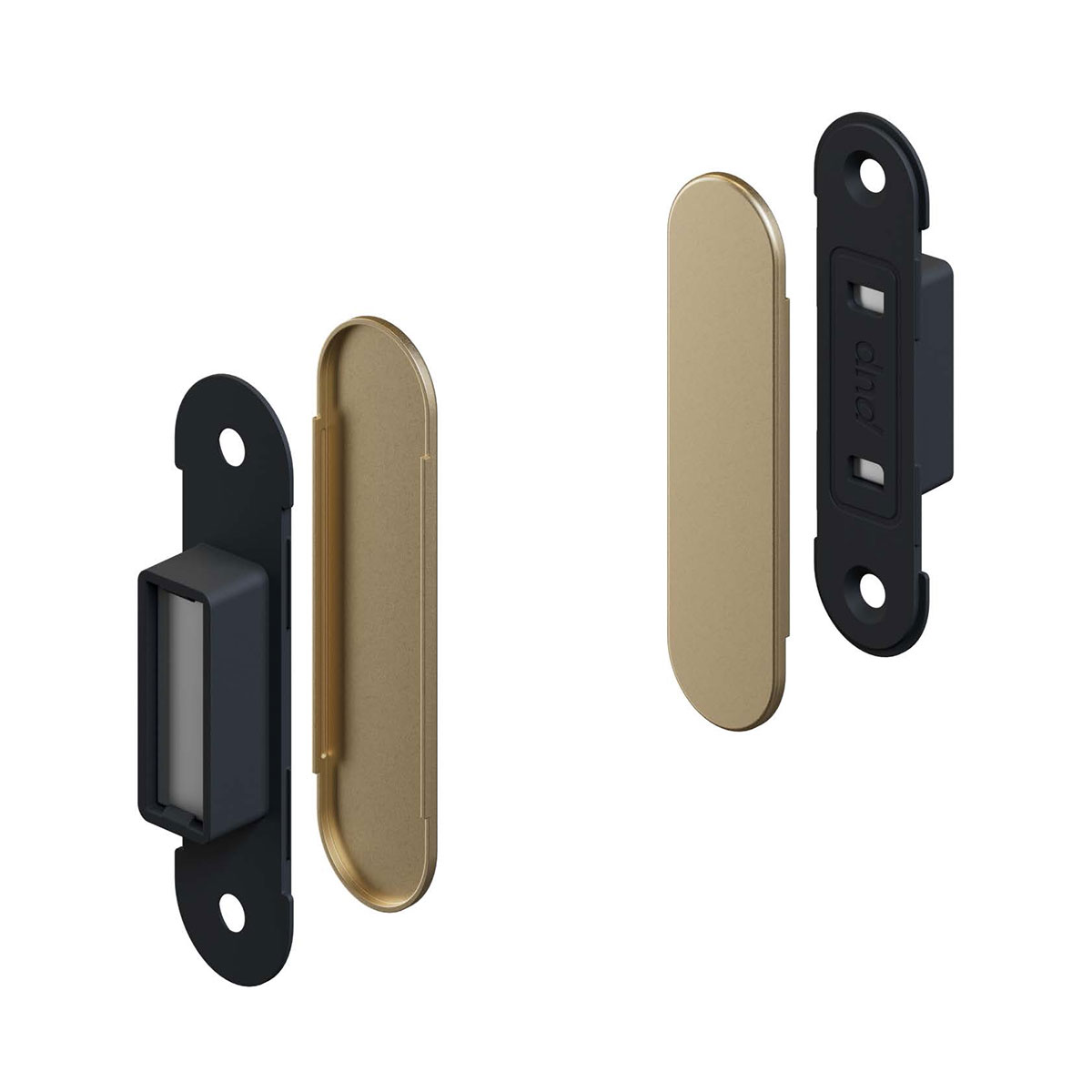 Het Dynamic-systeem bestaat uit een set magneetbehuizingingen en een messing cover welke gezamelijk als een tegenpoolsteun werkt die de deur aantrekt en vergrendelt.