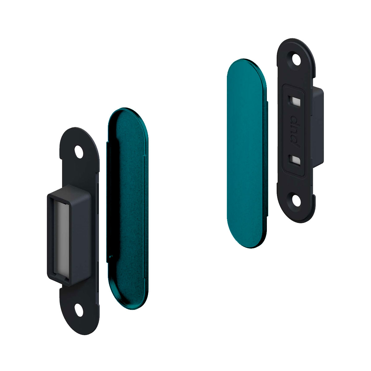 Het Dynamic-systeem bestaat uit een set magneetbehuizingingen en een messing cover welke gezamelijk als een tegenpoolsteun werkt die de deur aantrekt en vergrendelt.