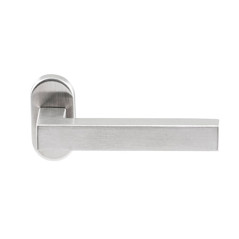 Een twintigtal moderne deurkrukken in RVS met geveerde rozetten, een prettige prijs en hoogwaardige kwaliteit.