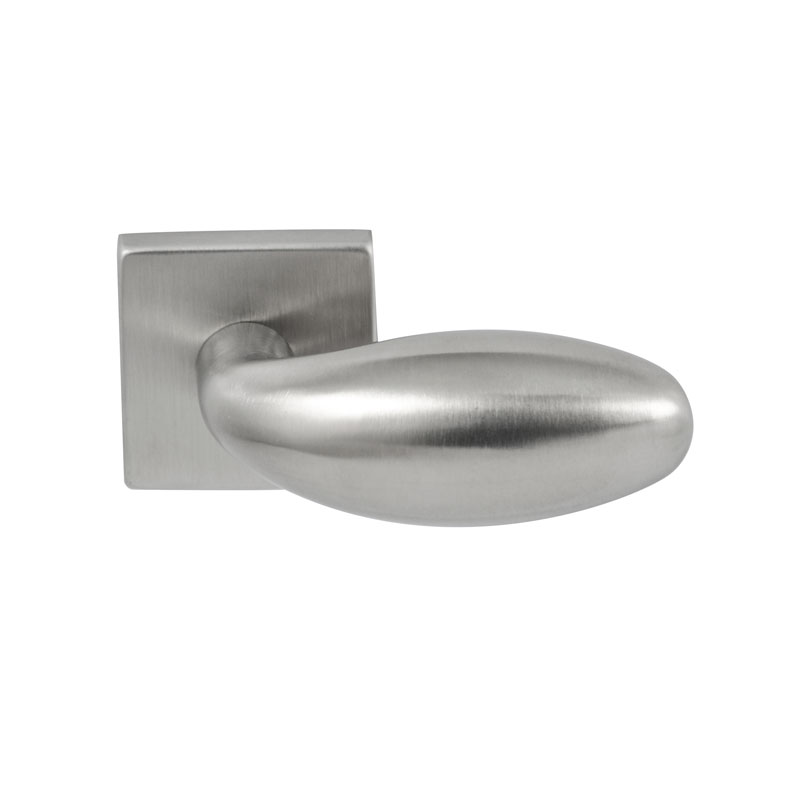 Een twintigtal moderne deurkrukken in RVS met geveerde rozetten, een prettige prijs en hoogwaardige kwaliteit.