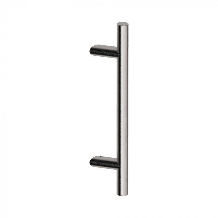 De ronde handgreep Frankfurt S 30x300x460mm inox op schuine voet is een mooie handgreep voor enkelzijdig of dubbelzijdig gebruik op bijvoorbeeld schuif- en klapdeuren.