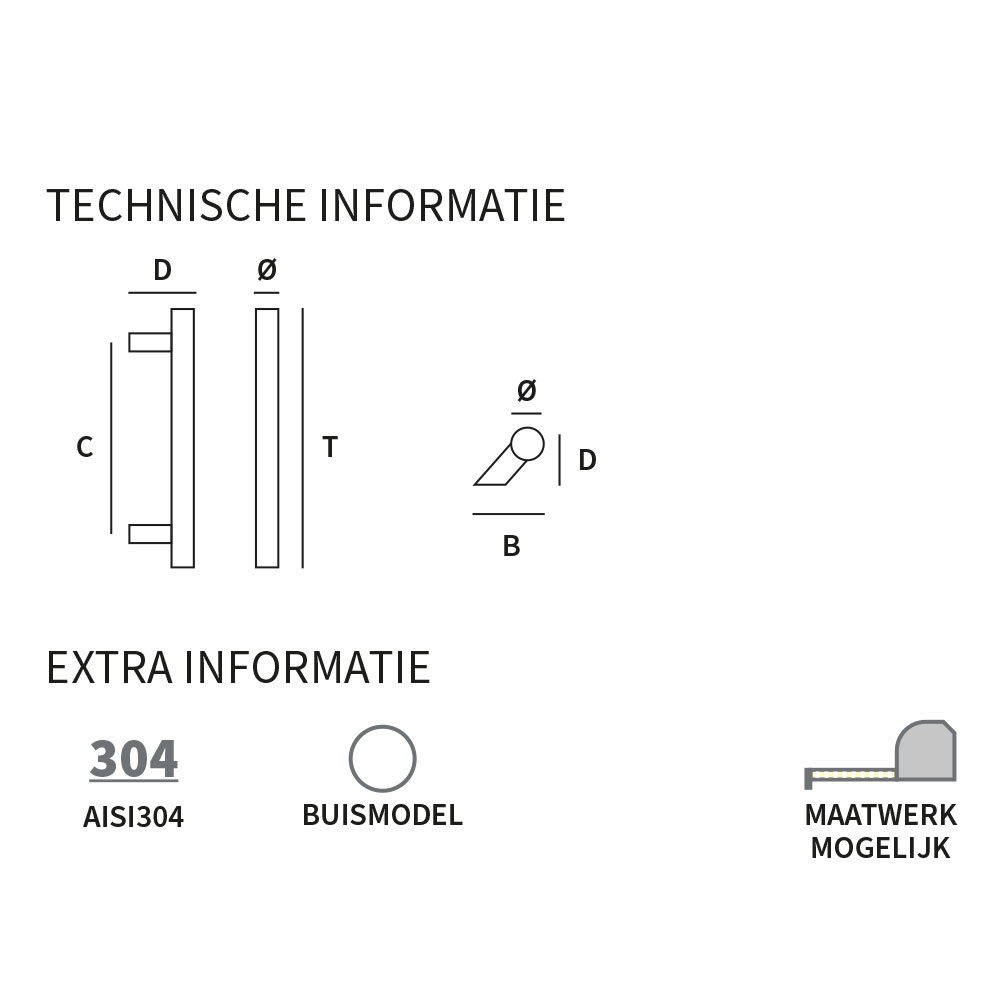 Deze RVS AISI304 handgreep wordt geleverd inclusief montagemateriaal. Voor enkelzijdig hout, dubbelzijdig hout en/of dubbelzijdig glas.
