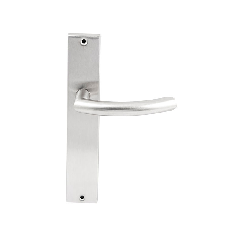 Een twintigtal moderne deurkrukken in RVS die vastgeveerd op een schild geleverd worden met een prettige prijs en hoogwaardige kwaliteit.