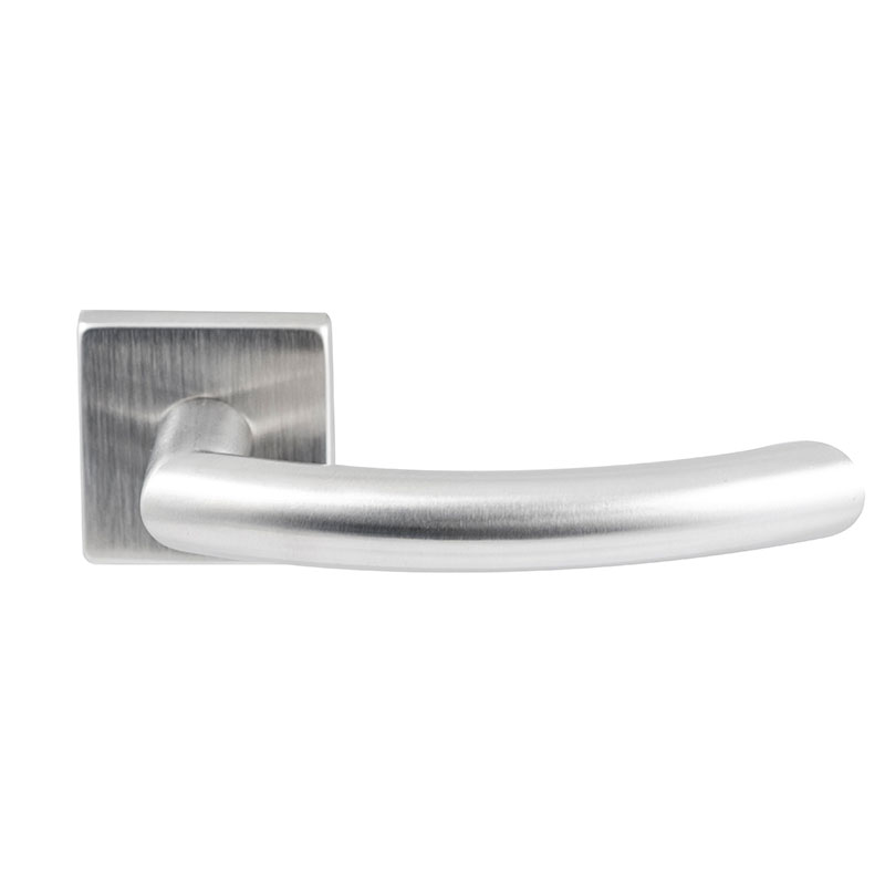 Een twintigtal moderne deurkrukken in RVS met geveerde rozetten, een prettige prijs en hoogwaardige kwaliteit.