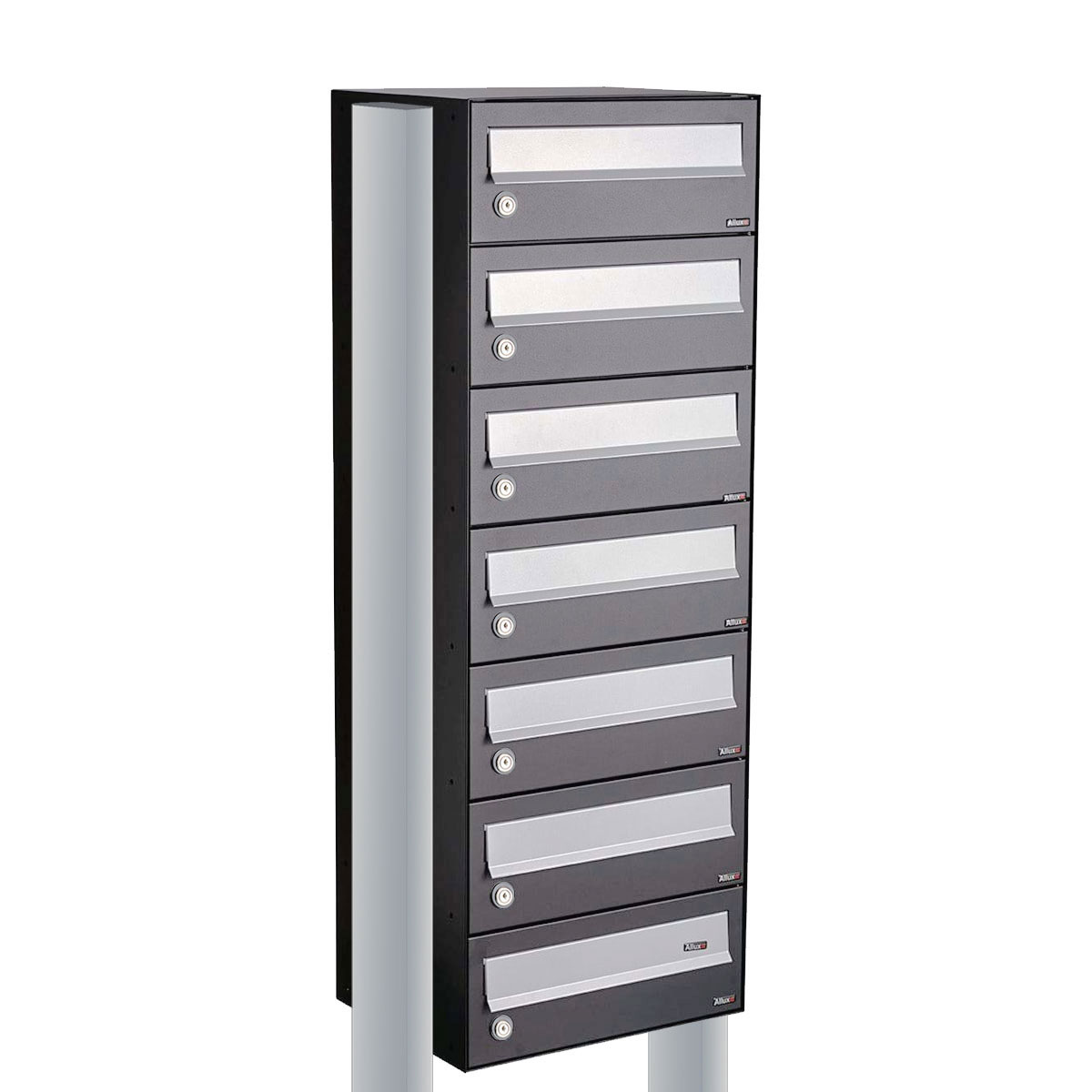 De Allux Hive set 1-breed, 7-hoog op statief antraciet is een modulair brievenbussysteem met een snelle levertijd.