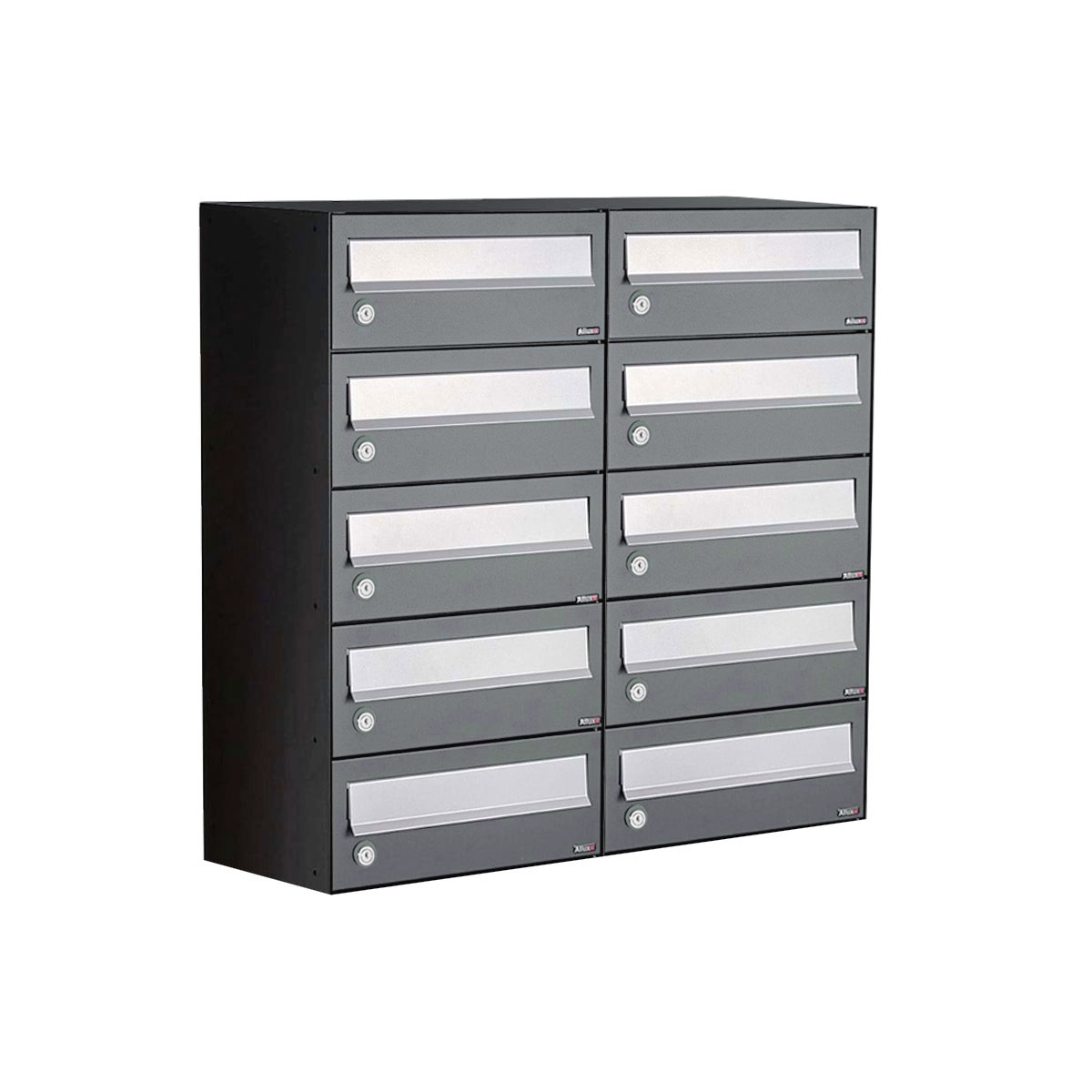 Deze set bestaat uit 10 brievenbussen. Het blok wordt compleet geleverd. Het enige constructiewerk op locatie is het boren van 2 gaten en het monteren van de onderdelen.