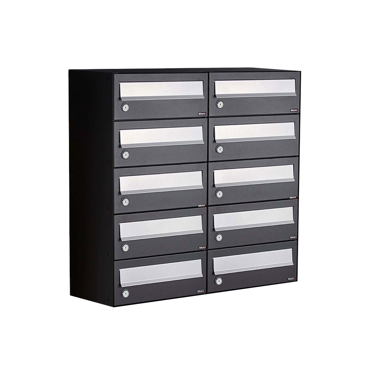 Deze set bestaat uit 10 brievenbussen. Het blok wordt compleet geleverd. Het enige constructiewerk op locatie is het boren van 2 gaten en het monteren van de onderdelen.