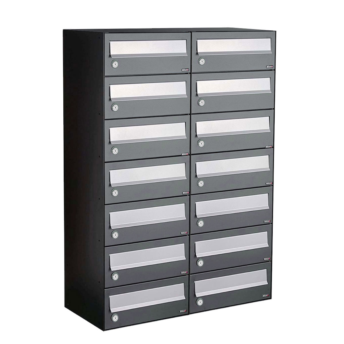 Deze set bestaat uit 14 brievenbussen. Het blok wordt compleet geleverd. Het enige constructiewerk op locatie is het boren van 2 gaten en het monteren van de onderdelen.