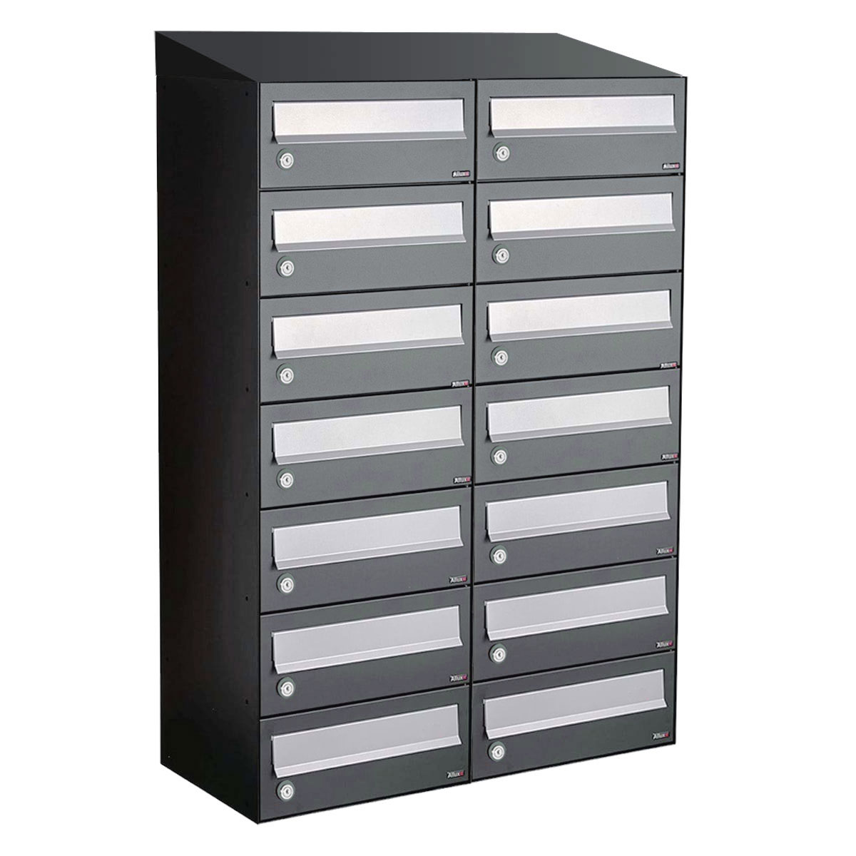 Brievenbus Hive set 2-breed, 7-hoog met dak antraciet