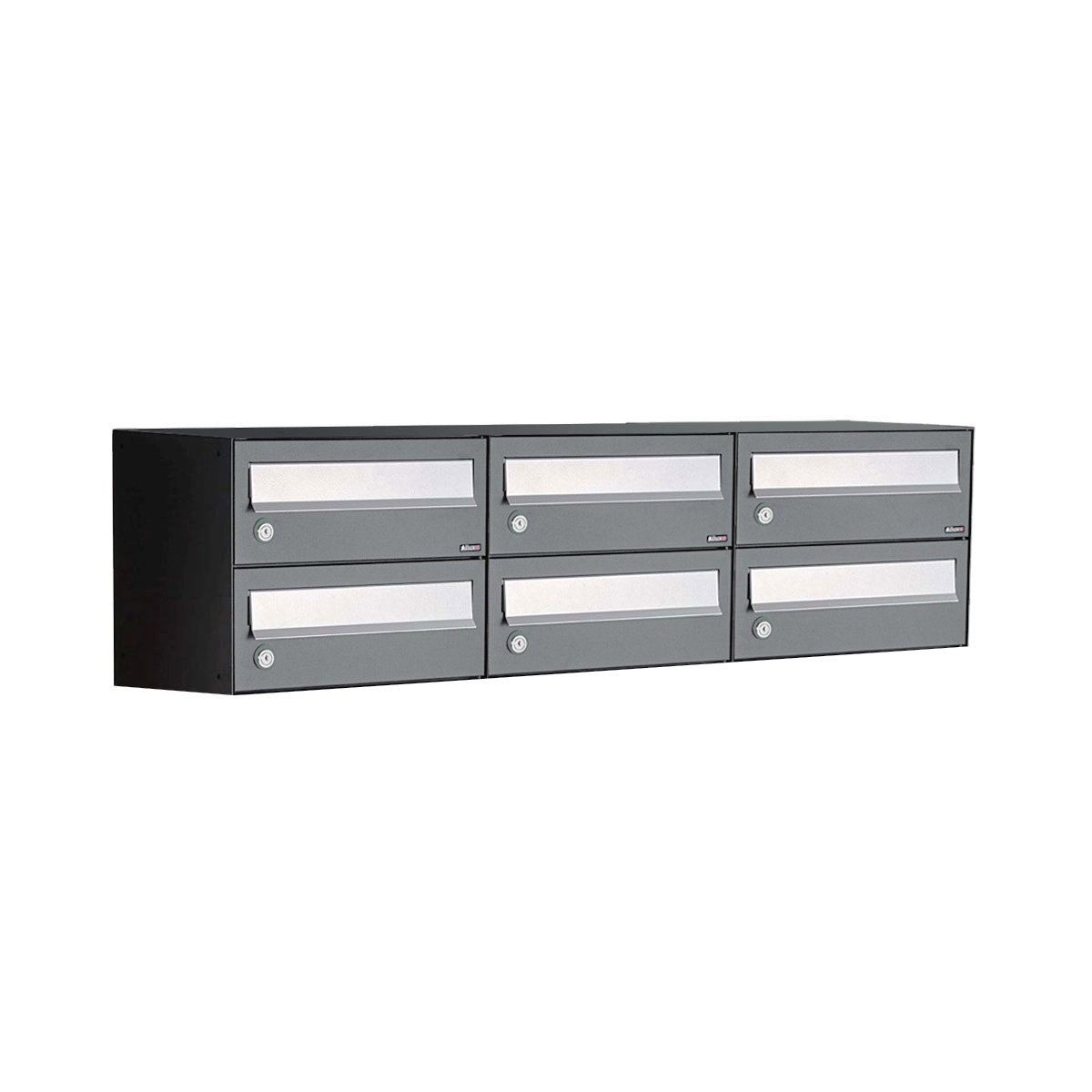 Deze set bestaat uit 6 brievenbussen. Het blok wordt compleet geleverd. Het enige constructiewerk op locatie is het boren van 2 gaten en het monteren van de onderdelen.