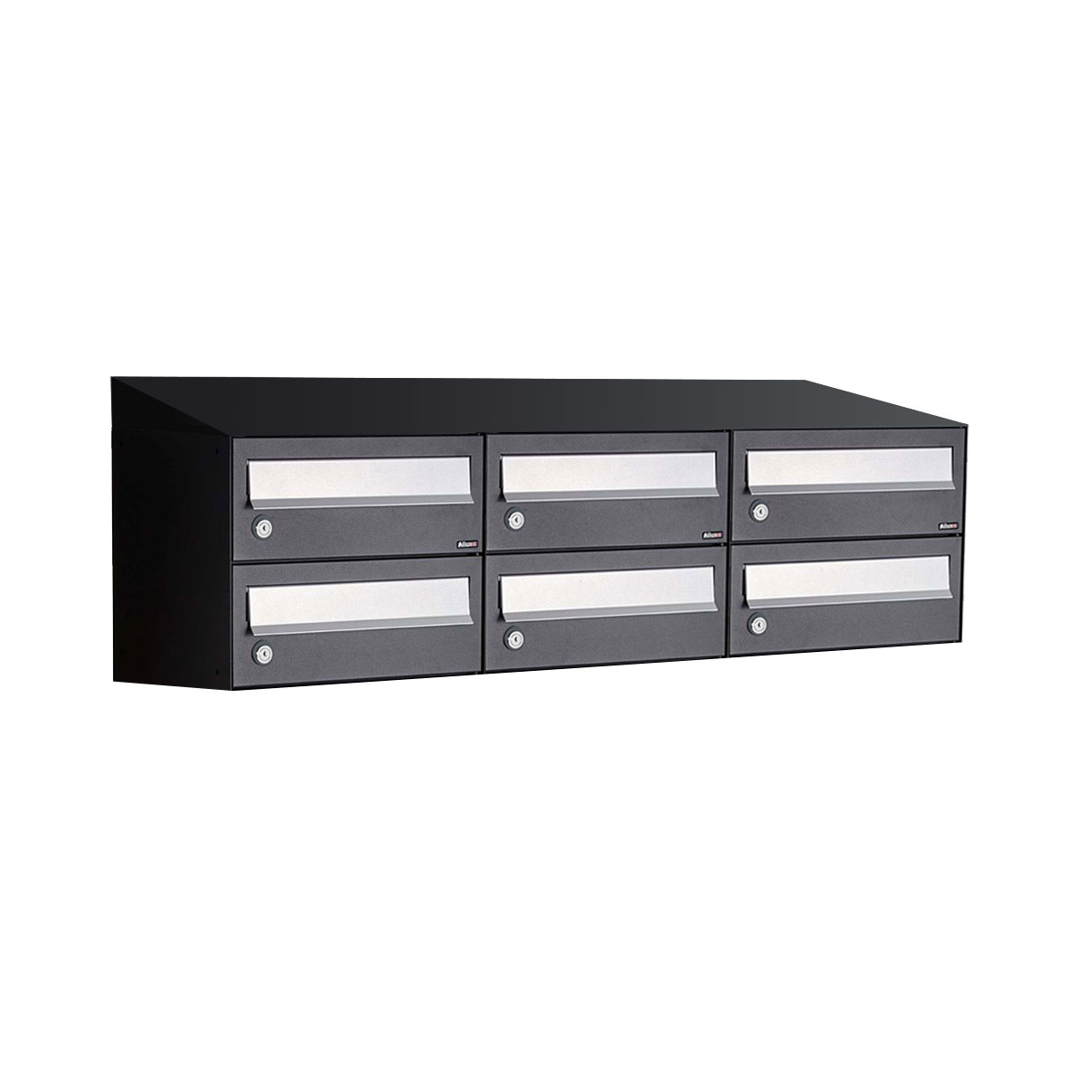 De Allux Hive set 3-breed, 2-hoog met dak zwart is een modulair brievenbussysteem met een snelle levertijd.