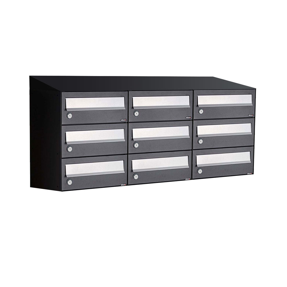 De Allux Hive set 3-breed, 3-hoog met dak zwart is een modulair brievenbussysteem met een snelle levertijd.