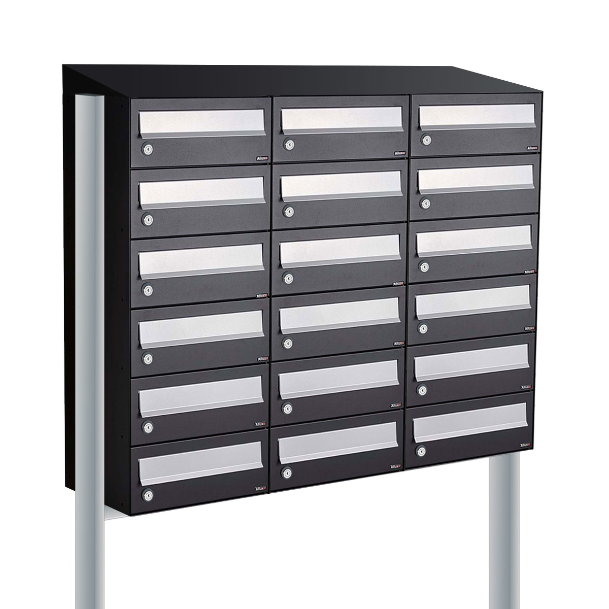 Brievenbus Hive set 3-breed, 6-hoog met dak op statief zwart