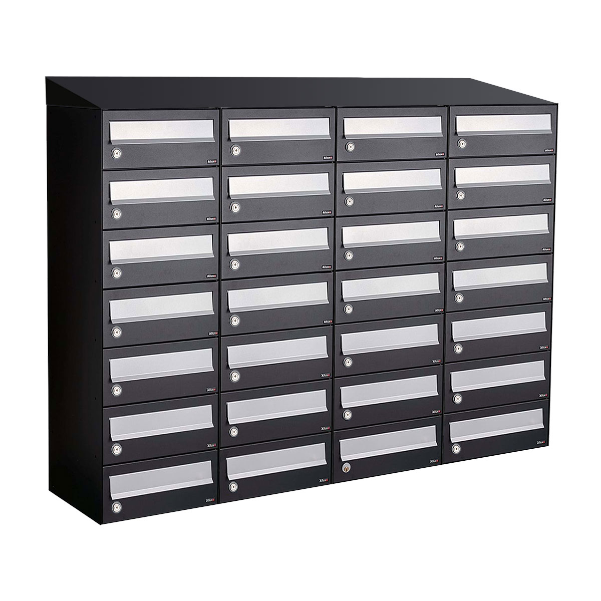 De Allux Hive set 4-breed, 7-hoog met dak zwart is een modulair brievenbussysteem met een snelle levertijd.