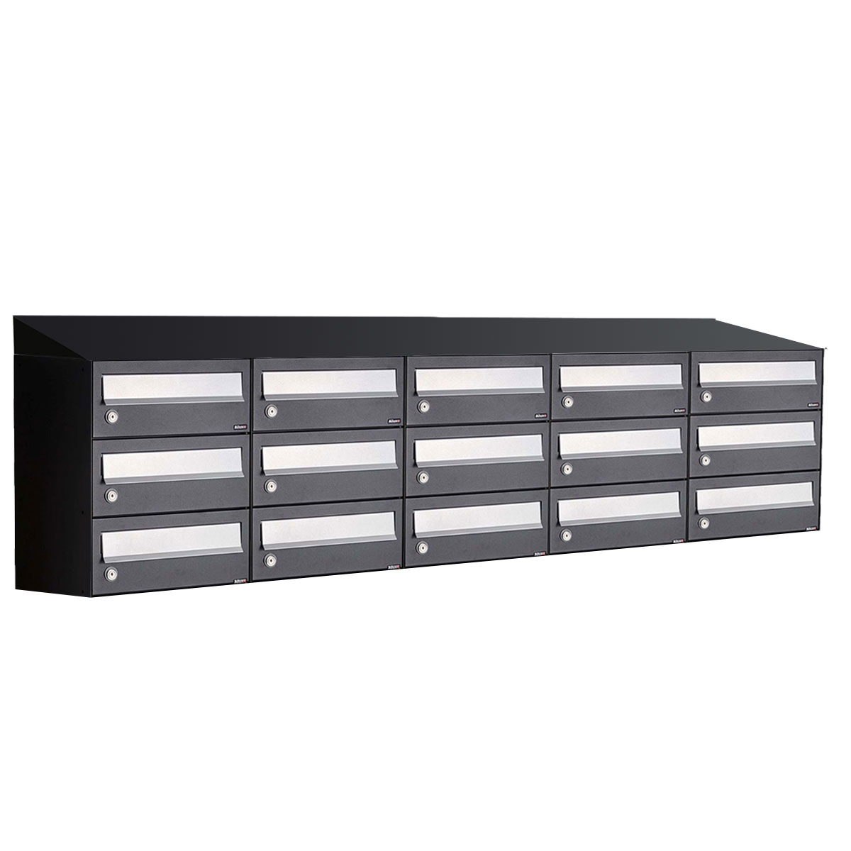 De Allux Hive set 5-breed, 3-hoog met dak zwart is een modulair brievenbussysteem met een snelle levertijd.