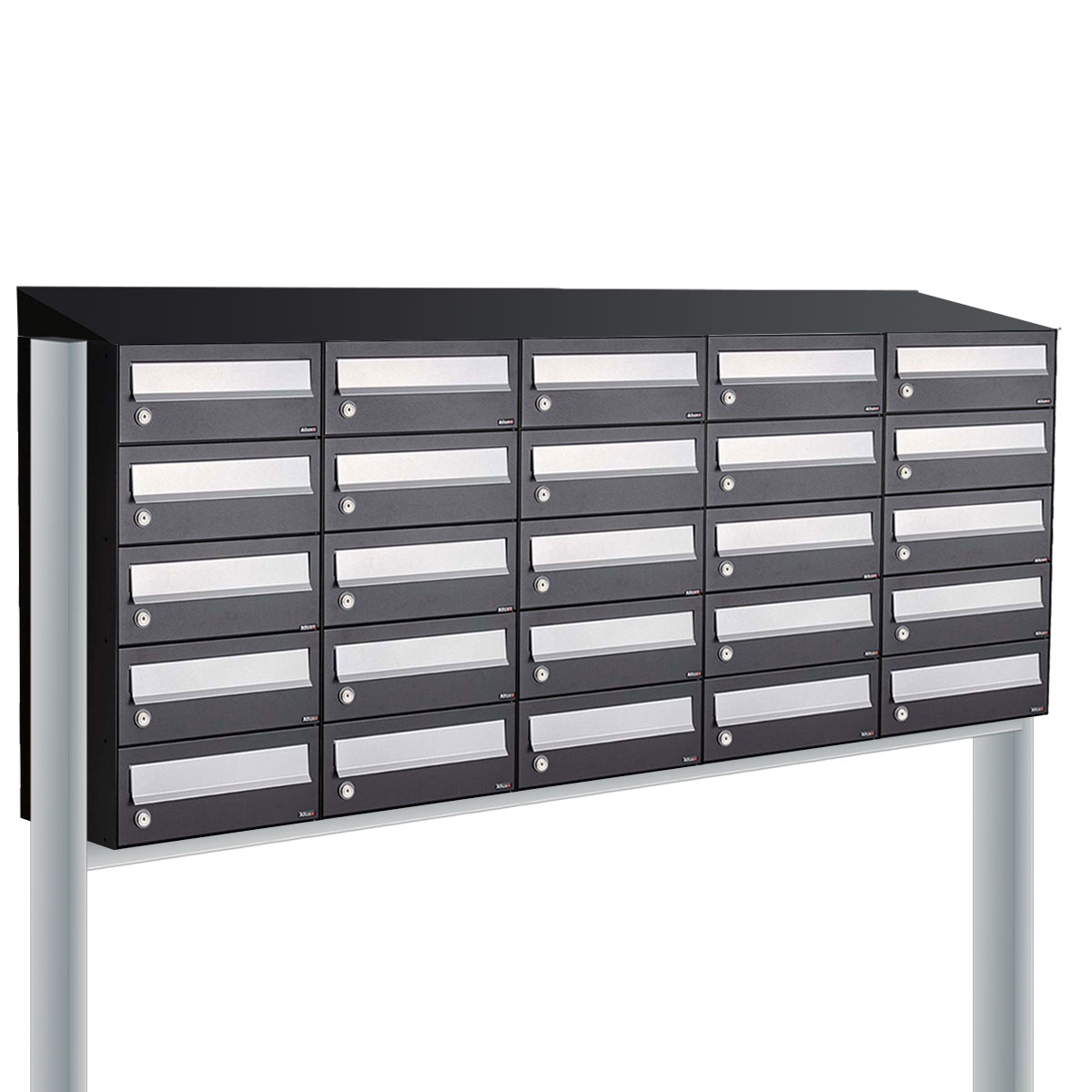 Brievenbus Hive set 5-breed, 5-hoog met dak op statief zwart