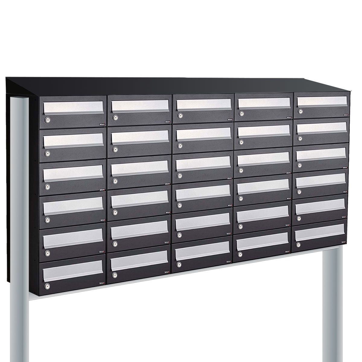 Brievenbus Hive set 5-breed, 6-hoog met dak op statief zwart
