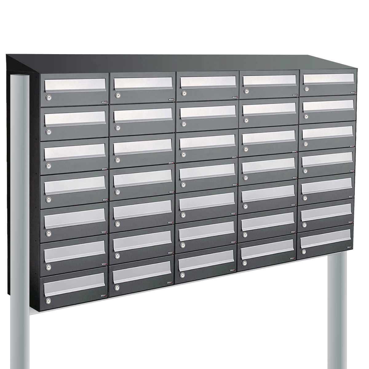Brievenbus Hive set 5-breed, 7-hoog met dak op statief antraciet