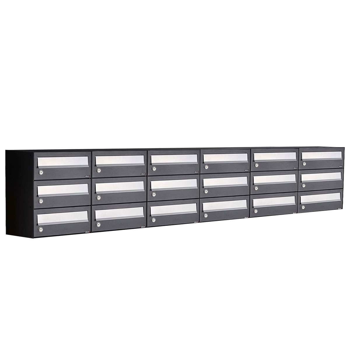 Deze set bestaat uit 18 brievenbussen. Het blok wordt compleet geleverd. Het enige constructiewerk op locatie is het boren van 2 gaten en het monteren van de onderdelen.