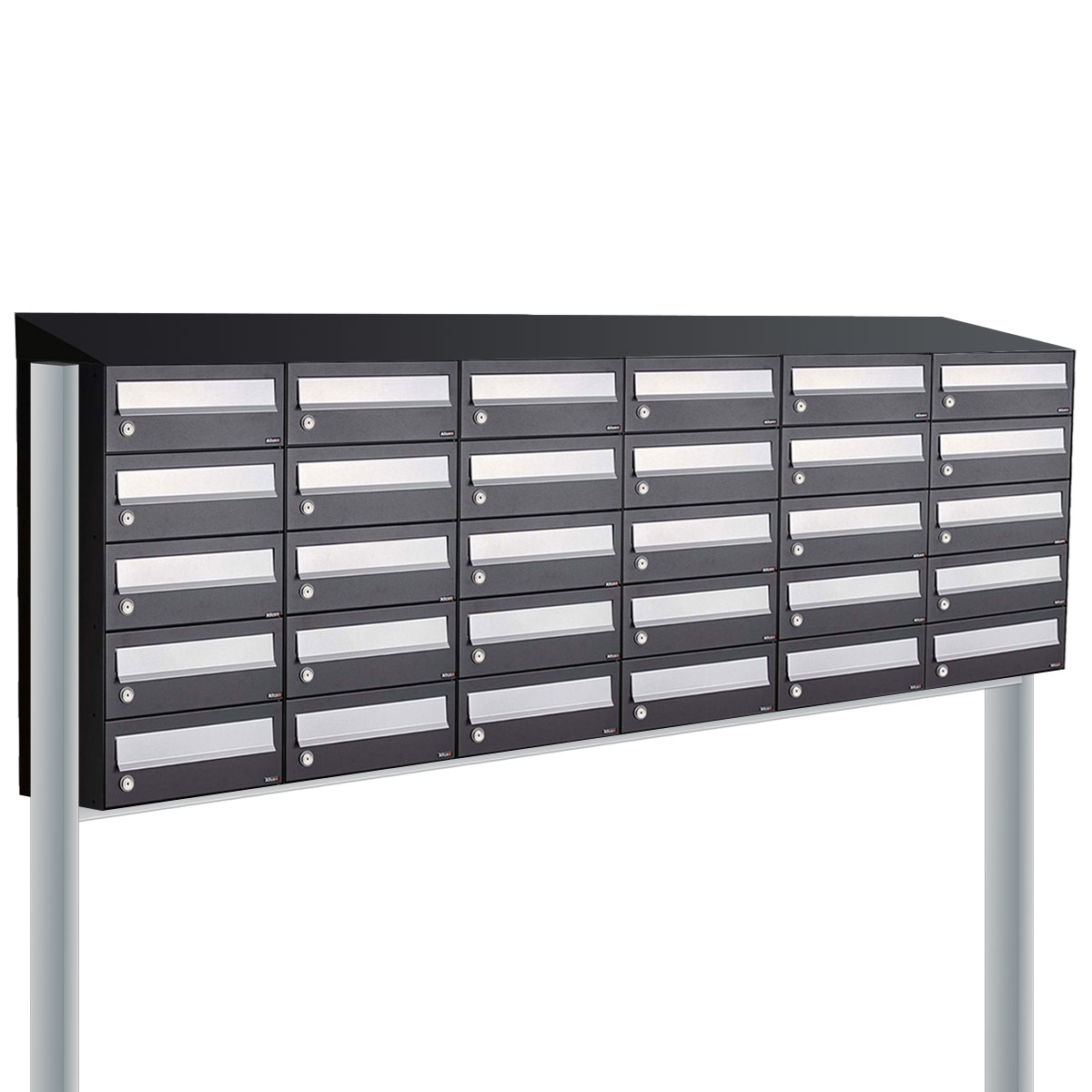Brievenbus Hive set 6-breed, 5-hoog met dak op statief zwart