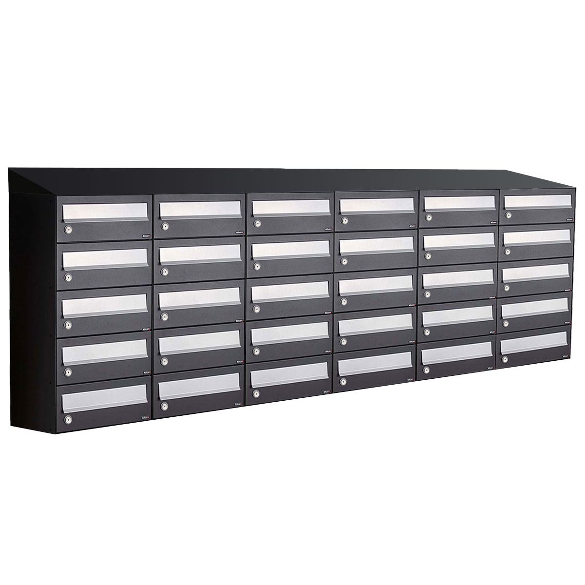 De Allux Hive set 6-breed, 5-hoog met dak zwart is een modulair brievenbussysteem met een snelle levertijd.