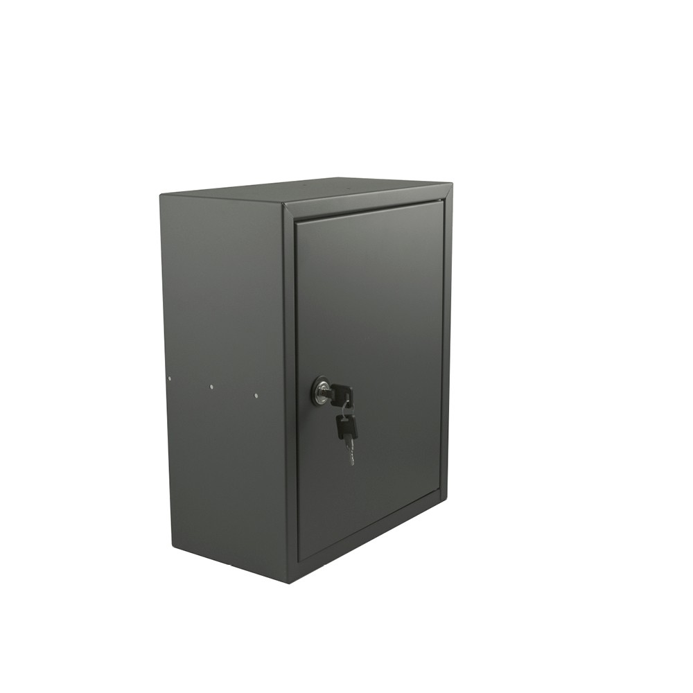 De inbouwkast antraciet 165mm bestaat uit een kader en een deur. De deur is gemakkelijk aan te passen in draairichting. Het kader is voorzien van een waterkering. De verzinkt stalen basis is afwerkt met een poedercoating in de kleur antraciet (RAL 7024). De kast met open achterzijde wordt geleverd met een Euro-Locks automatenslot met 2 sleutels.