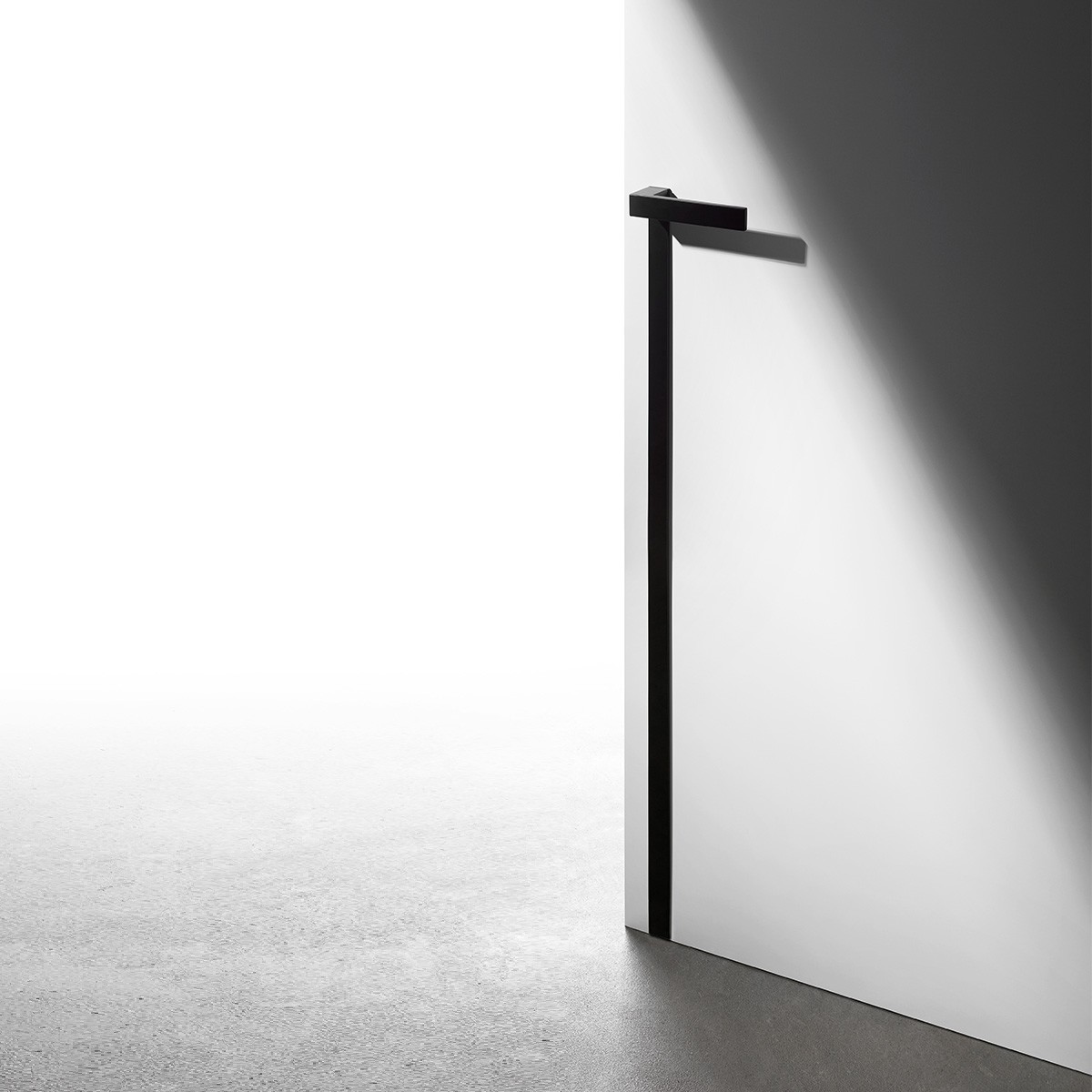 Deurkruk (IN)finito blind langschild zwart, ontworpen door Alfonso Femia, opent niet alleen een deur. Het gebaar dat gepaard gaat met het openen of sluiten van een deur moet deel uitmaken van de beschrijving van een emotie in de alledaagse dimensie van de tijd.