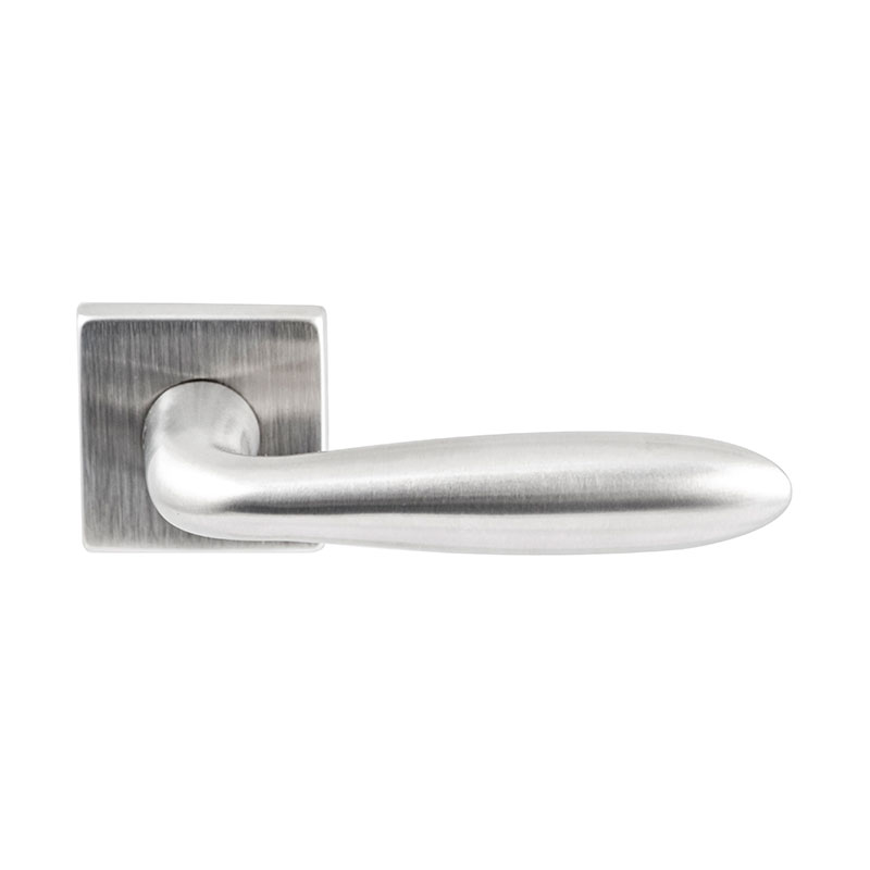 Een twintigtal moderne deurkrukken in RVS met geveerde rozetten, een prettige prijs en hoogwaardige kwaliteit.