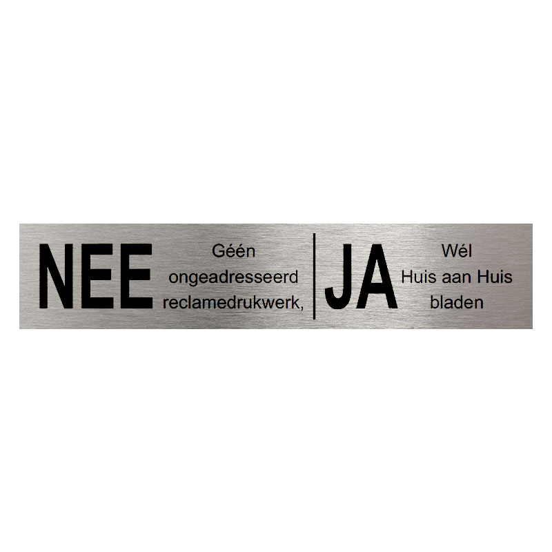Een JA/NEE plaatje van 120x25mm (bxh) die makkelijk zelfklevend gebruikt kan worden op een brievenbus of deur.