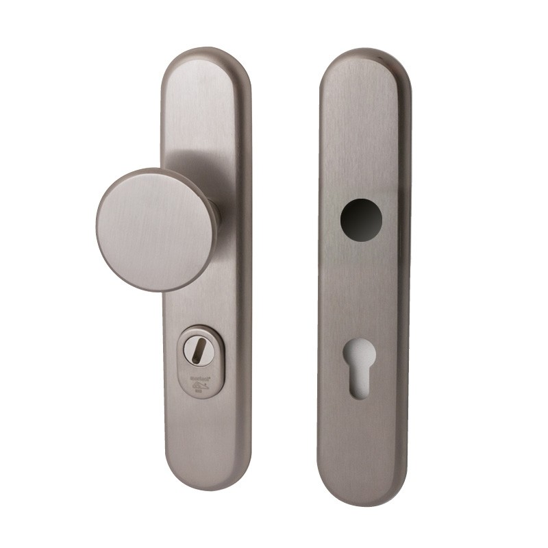 Geschikt voor profielcilinder. Standaard geleverd met bouten voor deuren tot 70mm.