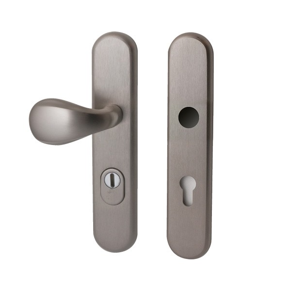 Geschikt voor profielcilinder. Standaard geleverd met bouten voor deuren tot 70mm.
