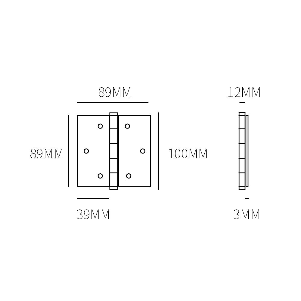 Een kogelscharnier met rechte hoeken, 89x89mm.