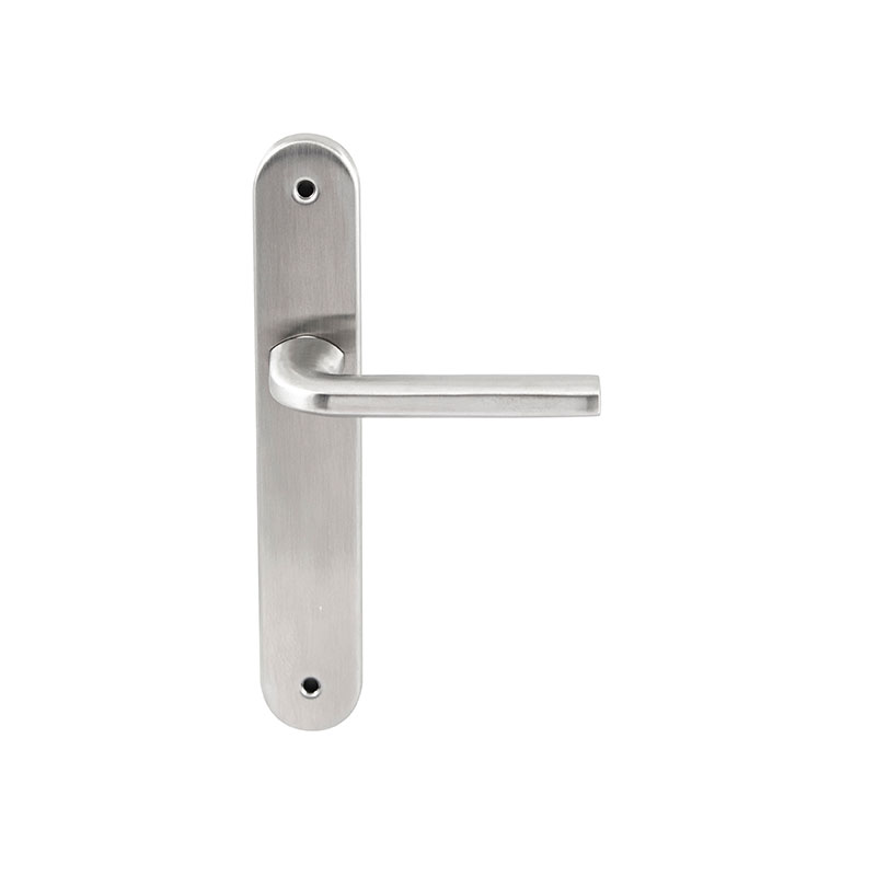 Een twintigtal moderne deurkrukken in RVS die vastgeveerd op een schild geleverd worden met een prettige prijs en hoogwaardige kwaliteit.